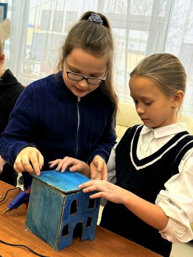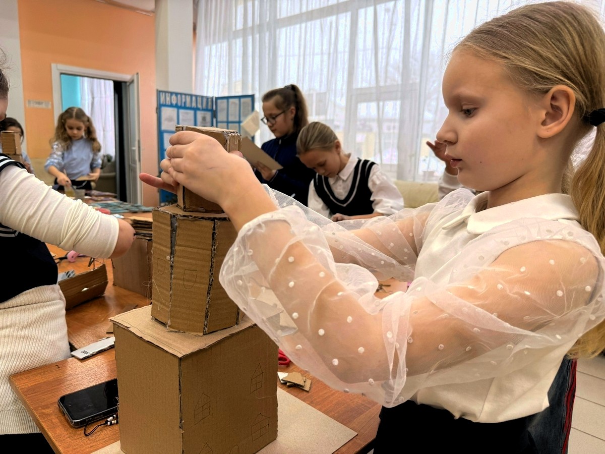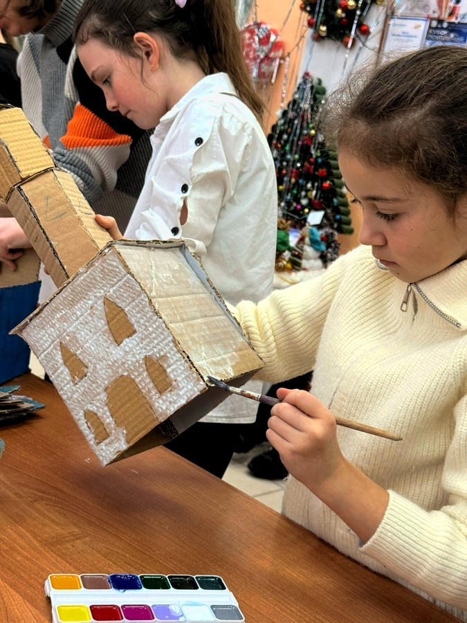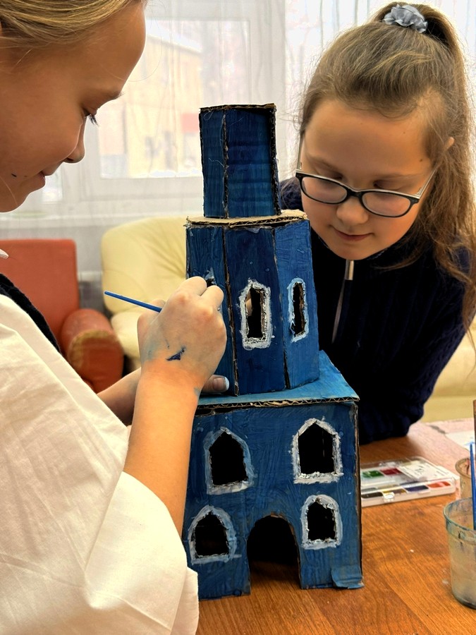 Для детей прошла увлекательная мастерская, где каждый смог создать своими руками памятный подарок — самый настоящий храм в технике картонаж.