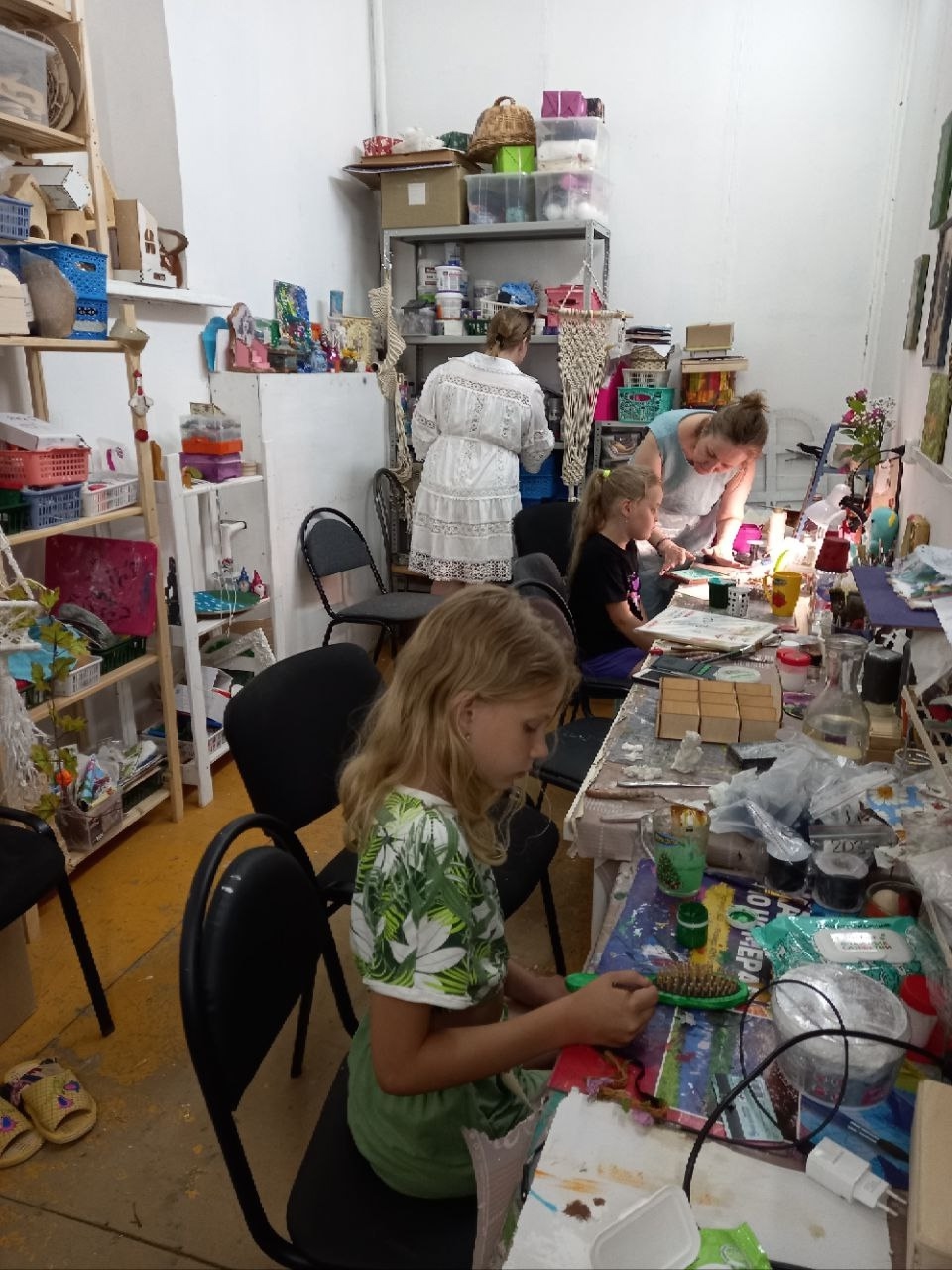 На летней площадке дети погружаются в мир творчества и фантазии, участвуя в мастер-классах по изготовлению различных подарков и сувениров своими руками.