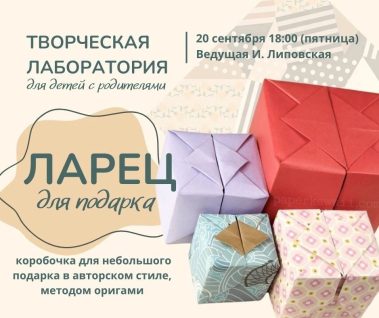 20 сентября в 17:00 – Творческая лаборатория для детей с родителями коллаж “Ларец для подарка”.