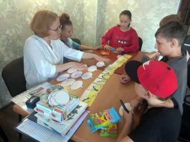 Творческий калейдоскоп для юного ума, горячего сердца и умелых рук провели сотрудники Библиотечно-информационный комплекса для ребят из пункта временного размещения для жителей ДНР и ЛНР.