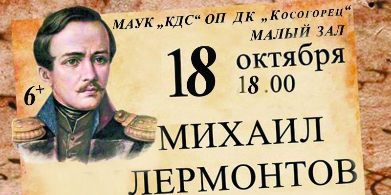 18 октября в малом зале Дома Культуры “Косогорец” состоится творческий вечер-концерт, посвященный 205-летию со дня рождения поэта М.Ю.Лермонтова.