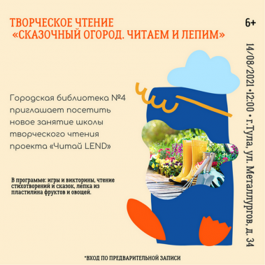 14 августа в 12:00 в городской библиотеке № 4 состоится новое занятие школы творческого чтения проекта «Читай LEND».