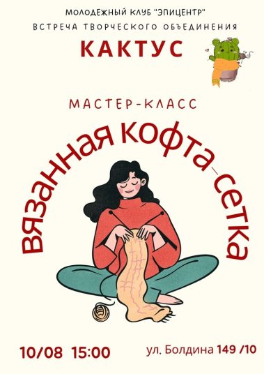 Творческое объединение «Кактус», действующее на базе Молодёжного клуба «Эпицентр» Тульской библиотечной системы, приглашает на мастер-класс по созданию кофты особого вида — сетки с бантиками.