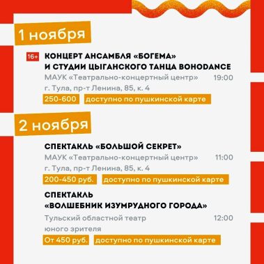 Думаете, как провести осенние каникулы? Мы подобрали для вас список событий, которые подарят новые впечатления.