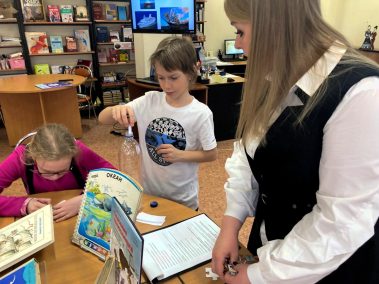 Наших гостей ждало много интересного и познавательного. Библиотекарь провел беседу-диалог “Тайны и чудеса океанов”. Нашим юным друзьям пришлось устроить настоящий мозговой штурм, чтобы ответить на все вопросы и загадки водной глади. В большом количестве была представлена подборка книг библиотеки на морскую тематику.