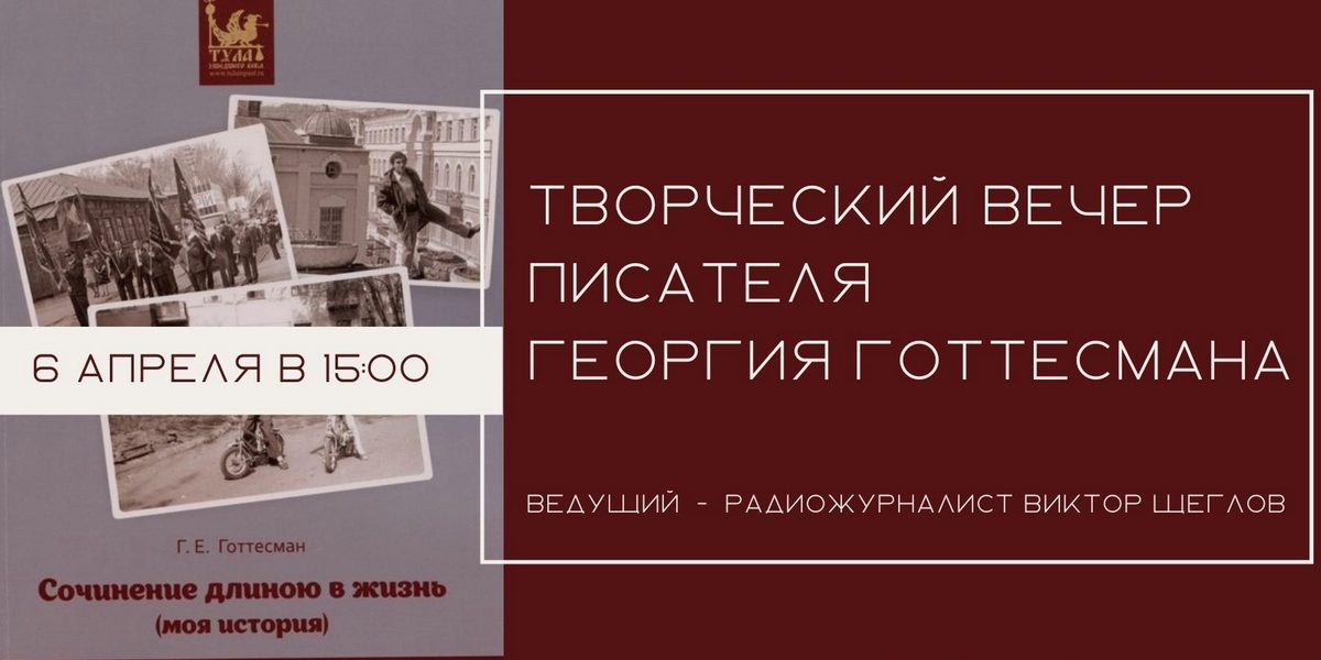 Георгий Готтесман – автор серии мемуаров, объединенных названием “Сочинение длиною в жизнь”, изданными в популярной серии “Тула ушедшего века” в типографии “Борус”. Одним из главных героев его мемуаров является родная Тула, в которой автор живет с раннего детства. Такие книги становятся уникальными документами эпохи, отображающими, через историю одной семьи, жизнь современников описываемых событий.