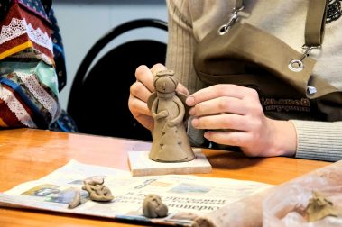 Мастера декоративно-прикладного искусства “Культурно-досуговой системы” узнали историю старинного тульского промысла, слепили новогоднего ангела и расписали маленькую копию тульской городской игрушки в плоскостном варианте