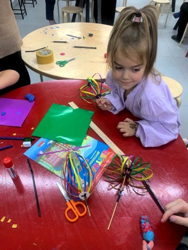 В Центре временного размещения с детишками из г. Курска и Белгорода, сотрудники Центра творчества “Михалковский” сделали яркую и интересную игрушку.