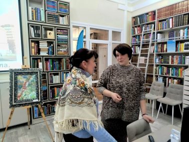Аудитория услышала историю единственного в городе храма, построенного в форме ротонды, рассказ об особенностях архитектуры, о внутреннем убранстве и об особенностях росписи, об иконописцах и необычных храмовых иконах.