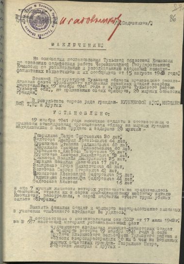 В небольшой деревне Прудное (Привокзальный округ г.Тулы) 19 ноября 1941 года произошла трагедия.