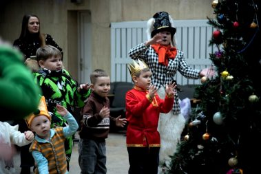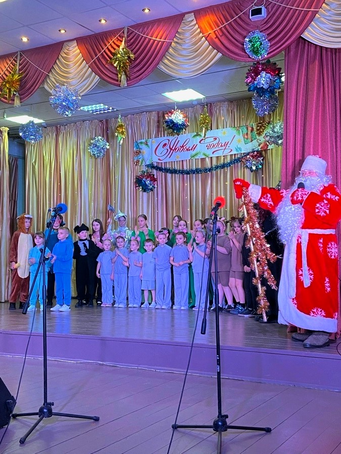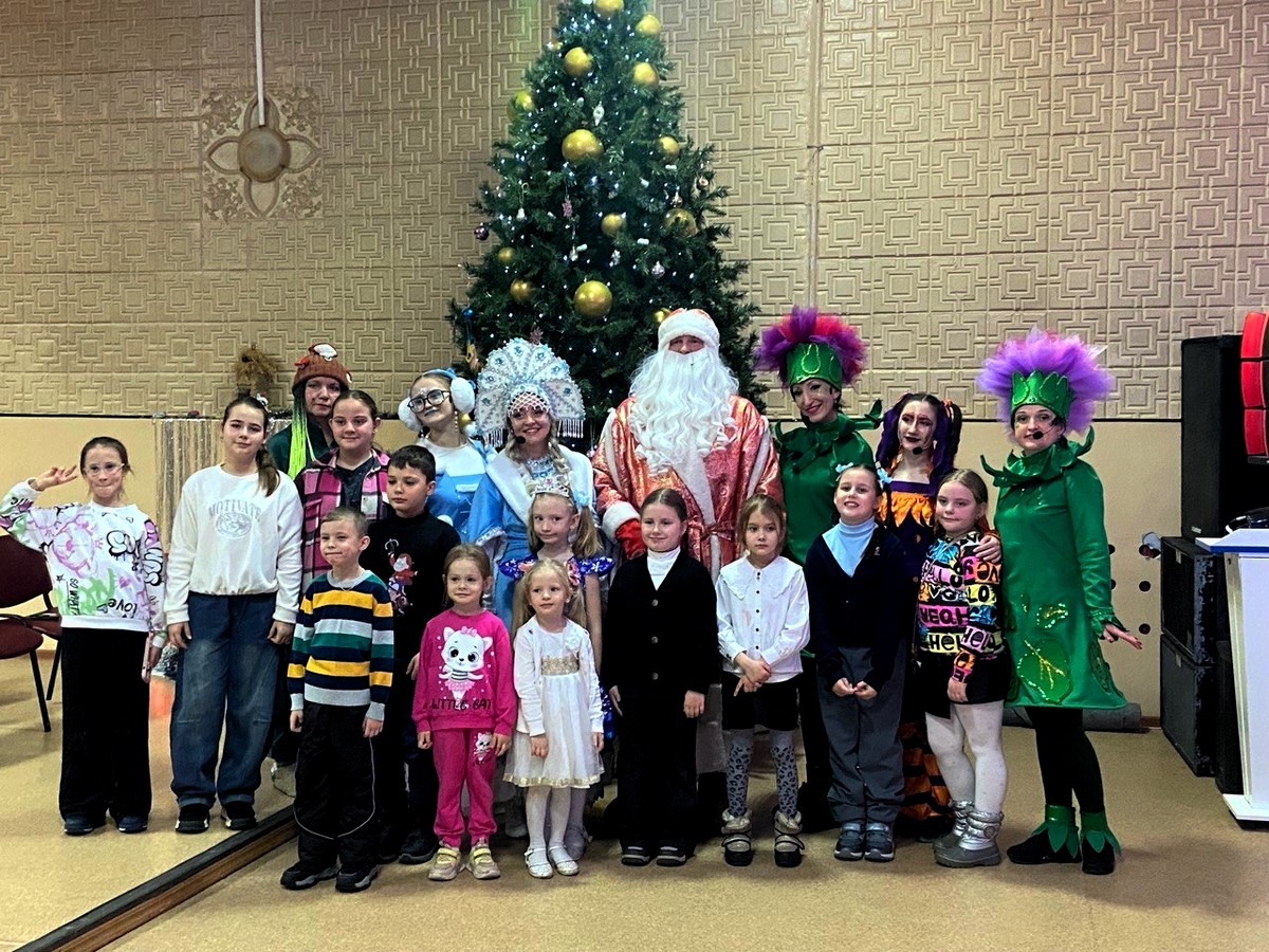 В завершении праздника Дед Мороз и Снегурочка помогли ребятам исполнить свои самые заветные желания, участвовали в веселых играх, пели и танцевали .