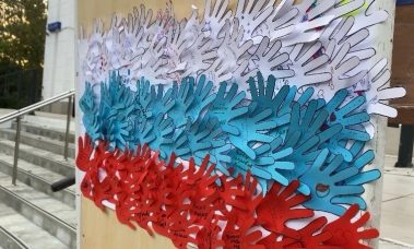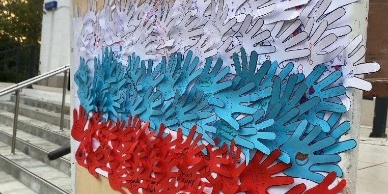 В этот торжественный праздничный день работала арт-площадка “Моя Россия – мой флаг”, где все желающие изготовили полотнище Российского флага из ладошек с пожеланиями нашей любимой Родине