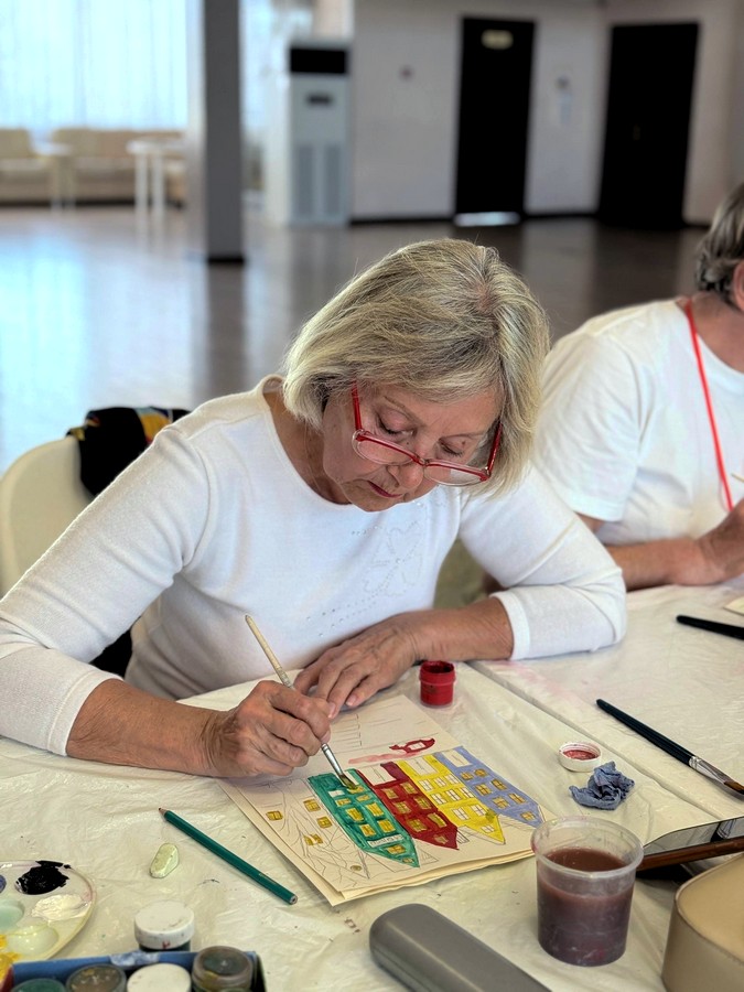 Под чарующие звуки классической музыки пожилые жители нашего города творили настоящие шедевры, создавая городской пейзаж родного уголка.