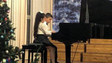 Юные пианисты преподнесли новогодние музыкальные подарки собравшимся.