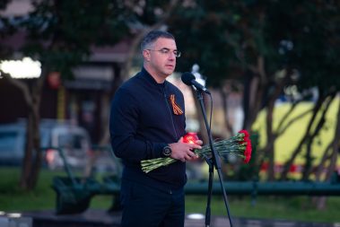 Участники акции поставили лампады с зажженными свечами к Вечному огню и стелам городов-героев, возложили венки и цветы. А ровно в 4 часа утра почтили память павших героев минутой молчания.