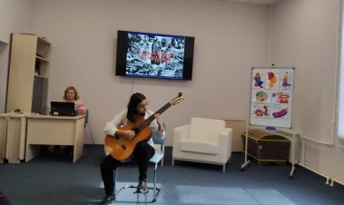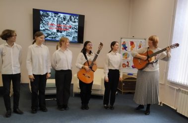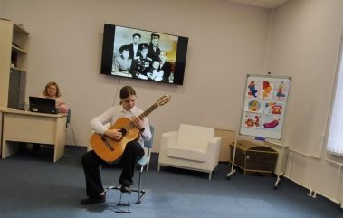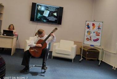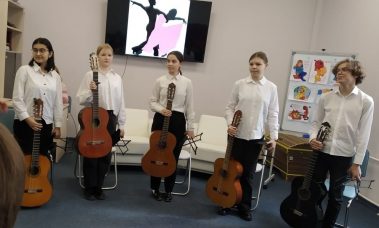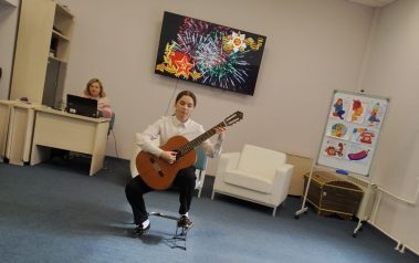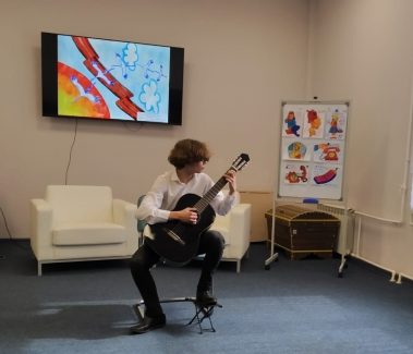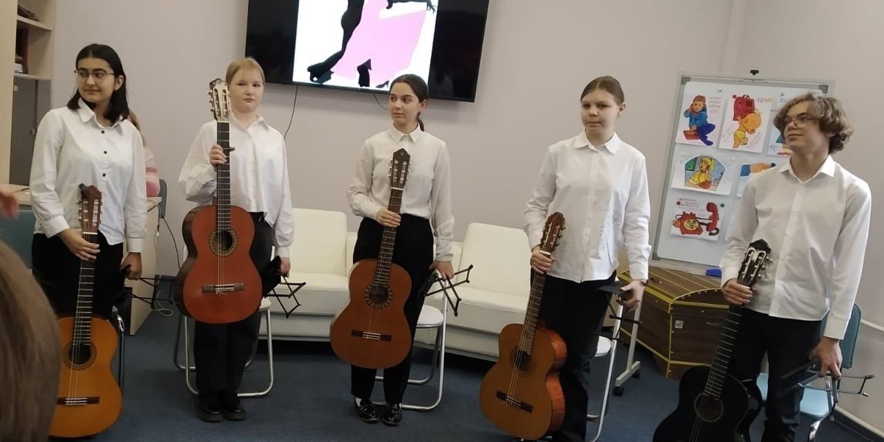 В исполнении ансамбля гитаристов “Ноктюрн” прозвучали “Танго” Е. Попляновой и “Грёзы” композитора В. Андреева. Чистякова Валерия задорно исполнила на гитаре русскую народную песню, а Гюлумян Лилит песни Булата Окуджавы. Зарина Оленченко в своих произведениях поведали о событиях военных лет. Туркина Александра и Филатов Кирилл представили виртуозную игру на гитаре. Ярко и весело звучали песни из мультфильмов, которые исполняли и взрослые, и дети.