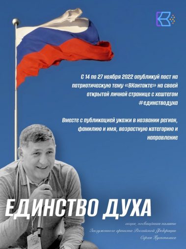 потенциала у школьников, приобщения их к историческим, культурным и нравственным ценностям, традициям своего народа, воспитания чувства национального достоинства и гордости. Пример его творчества стимулировал социальный оптимизм российского общества. Акция “Единство духа”, как и творчество Сергея, продвигает идею патриотического воспитания школьников, уважительное отношение к Родине, ее культуре и истории.
