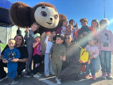 В начале праздника детей встречал огромный Чебурашка и устроил настоящее диско а так же детей поразил волшебный мега-туман и научные эксперименты от Феномен-шоу