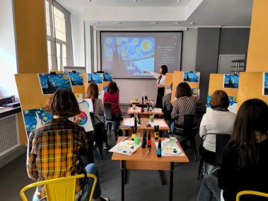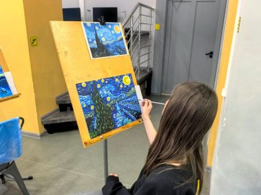 В Центральной городской библиотеке им. Л.Н. Толстого прошло второе занятие “Рисование картины по мотивам произведения Ван Гога “Звездная ночь”.