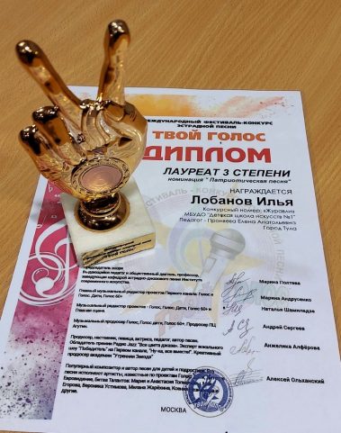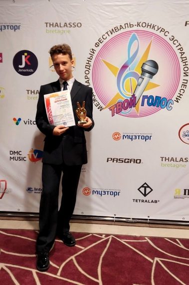 И вот вашему вниманию Лауреат III степени Международного конкурса “Твой голос” с высокопрофессиональным экспертным жюри, в которое вошли: продюсеры и редакторы телевизионных вокальных шоу Первого канала:”Голос”, “Голос.Дети”, “Ну-ка, все вместе!” , лучшие педагоги по вокалу и известные композиторы. Получил ценные рекомендации. Это был новый уровень. Высший пилотаж!
