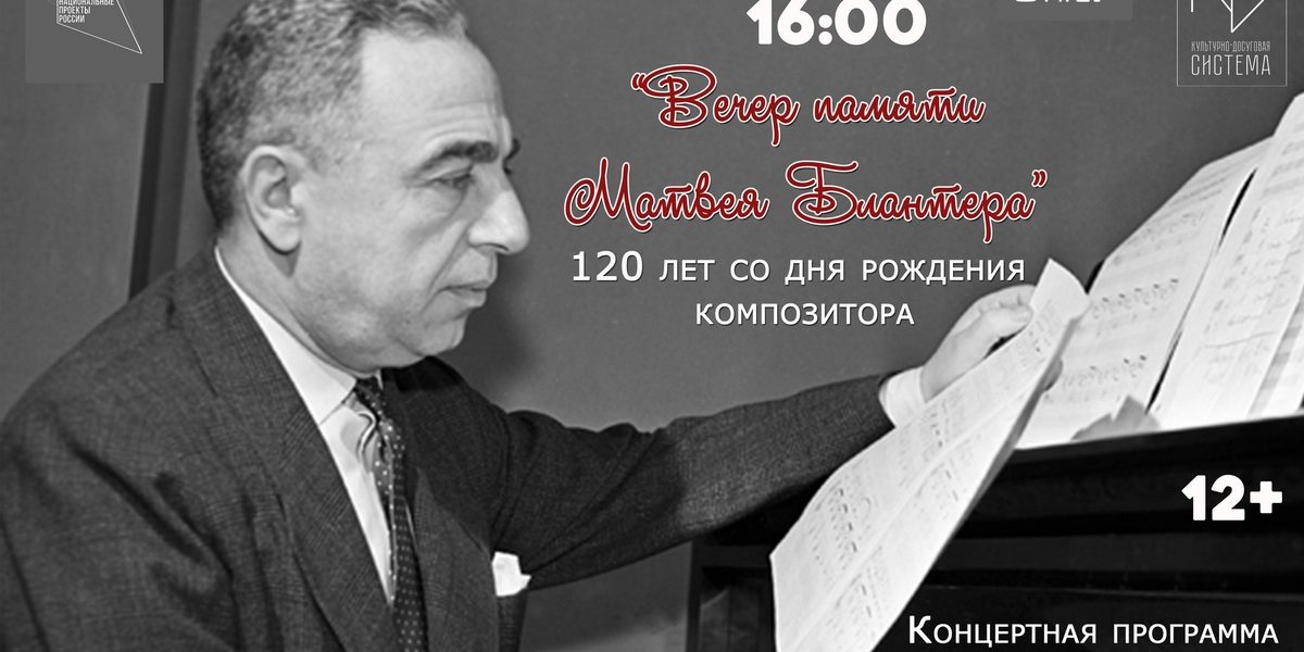 Приглашаем всех на концертную программу, посвященную 120-летию со дня рождения композитора Матвея Блантера.
