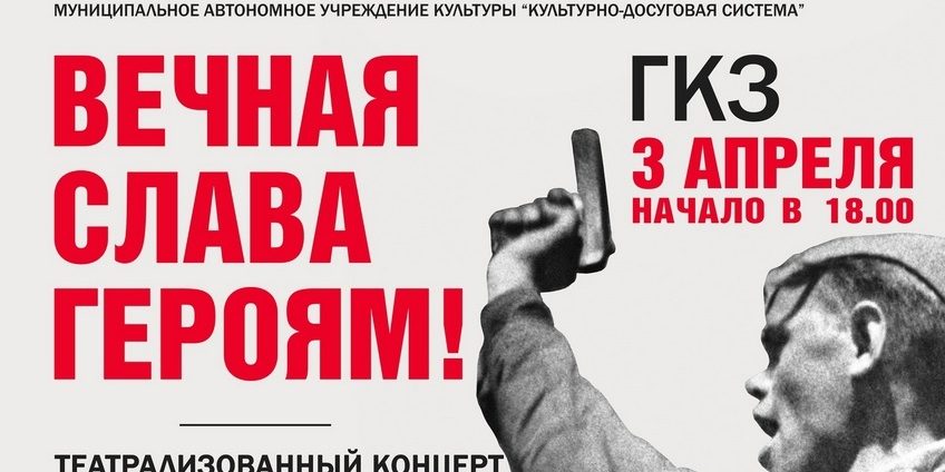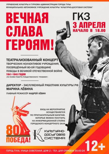 Театрализованный концерт “Вечная слава героям” создан на основе патриотических и военно-патриотических номеров творческих коллективов учреждения, а так же поэмы Роберта Рождественского “Реквием”.