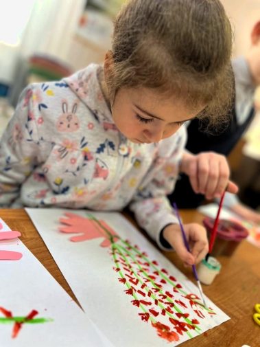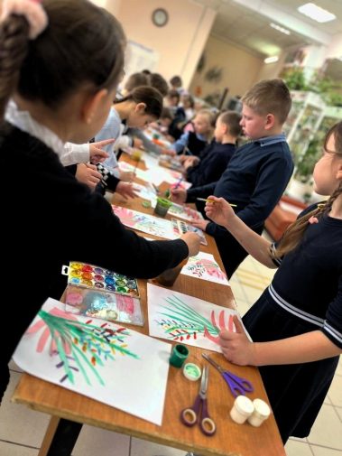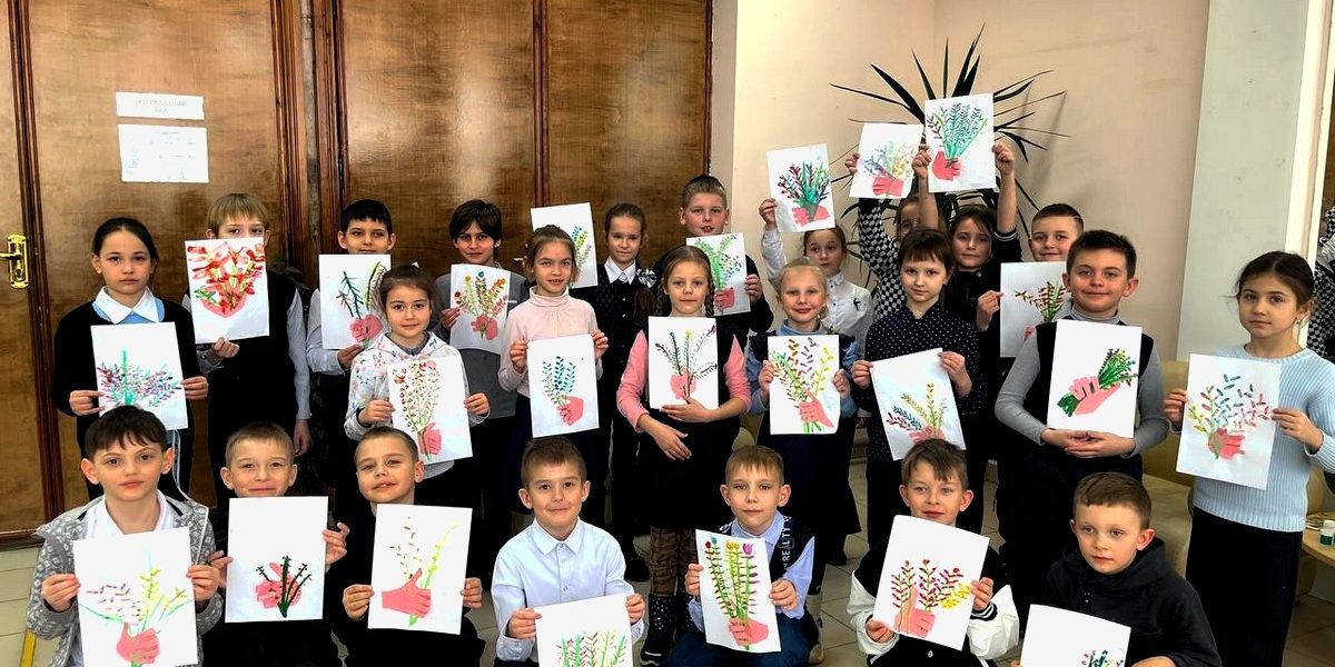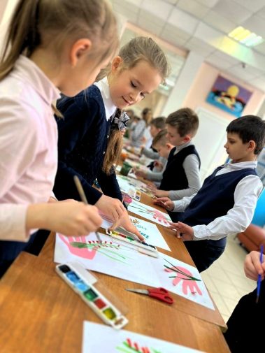 С помощью цветной бумаги, ножниц, красок и клея дети кропотливо создавали чудесные весенние цветы