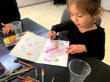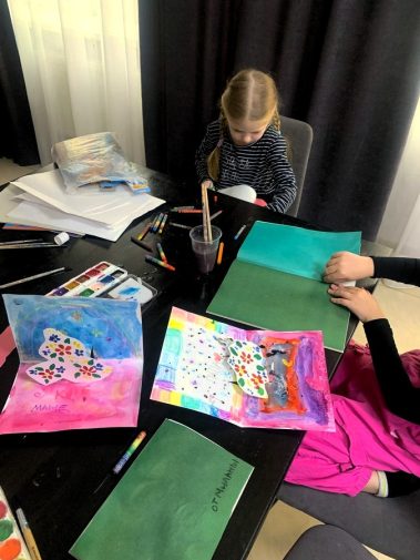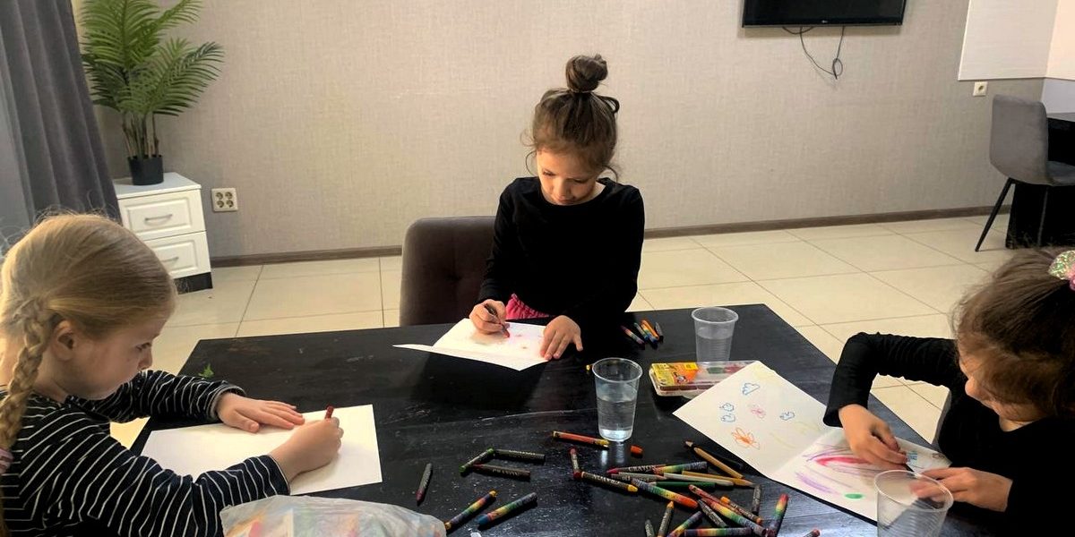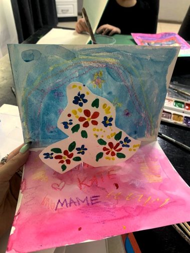Мастер-класс для ребят в Пункте временного размещения. Сегодня они вместе с Аленой Демченко создавали яркие открытки.