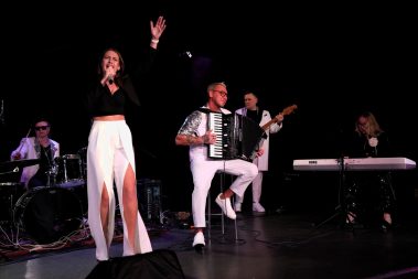 Красавица Любовь Мельник задала романтический тон концерту, исполнив очень эмоциональную песню Полины Гагариной “Ты не целуй”, суперпозитивную “Счастье” Алексея Чумакова и много других шикарных композиций.