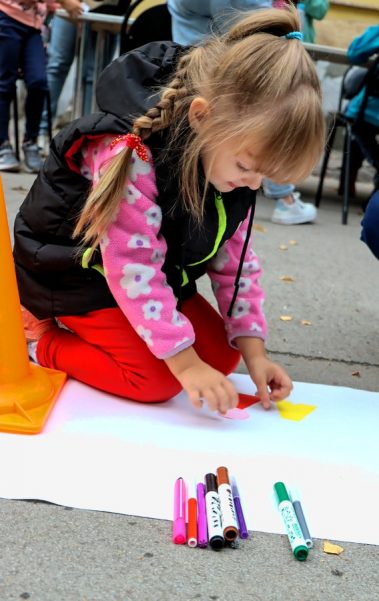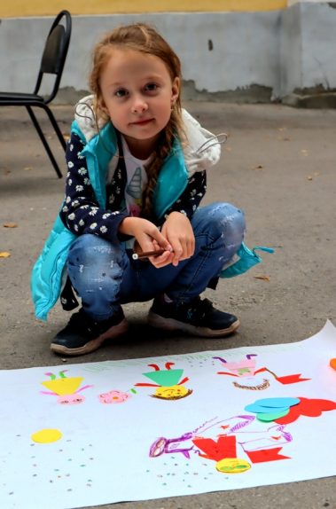 После беседы дети сделали человечков и наклеили их на длинное полотно, которое получилось ярким и необычным.