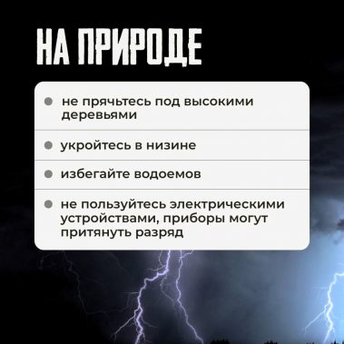 Особенно опасно находиться у водоёмов — вода отлично проводит электрический ток, поэтому купание во время грозы может быть смертельно опасным.