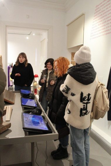 В прошедшую пятницу мы успели не только теоретически ознакомиться с работой экспозиционно-выставочного отдела музея, но и на практике увидеть и узнать о всех тонкостях организации действующей в настоящий момент выставки Тульского историко-архитектурного музея “Между строчек: Швейное мастерство и модная индустрия в Туле 1970–1990-х” в Доме Крафта!