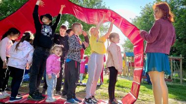 И прямо сейчас наши волонтёры работают актёрами, выступают с творческими номерами, организуют мастер-классы, создают атмосферу праздника для маленьких участников.