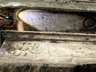 Теперь к интригующей находке. На третьем участке продолжилась работа по расчистке и вычитке белокаменных саркофагов. В итоге удалось выкопать, перекантовать и очистить два надгробия. Это позволило прочитать тексты на их фасадах. Оказалось, что камни принадлежат купцу Ивану Игнатовичу Петрову и его жене. В надписях обнаружилось указание на то, что ими была учреждена одна из тульских богаделен. Примечательный текст с надгробий, эпитафии и информацию о семье купца и его деятельности мы опубликуем позже. Это заслуживает отдельного внимания. Следите за новостями.