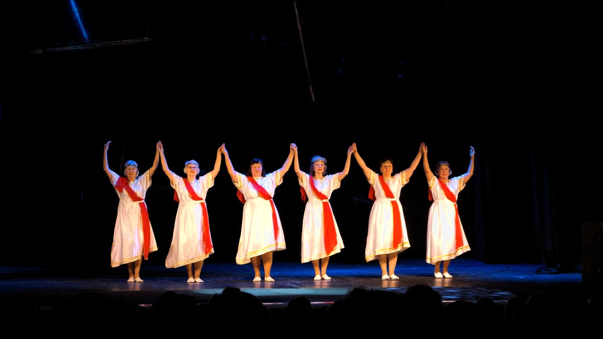 Средний возраст участниц этого уникального женского коллектива 70 лет, но глядя на их грацию, задор и несгибаемую энергию, в это просто невозможно поверить! В репертуаре ансамбля классическая хореография и зажигательные русские фольклорные танцы. А их «восточный» номер уже стал настоящей визитной карточкой и каждый раз вызывает овации в зале!