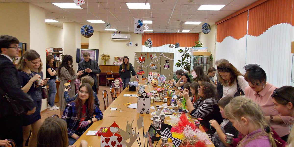 Все участники совершили весёлое и захватывающее путешествие с любимыми героями. Своим друзьям мы предложили необыЧАЙные развлечения! Чеширский кот приготовил для всех свои головоломки, где нужно было вспомнить литературных котов, отгадать шуточные загадки, правильно и с выражением прочитать замысловатые стихи. Взрослый абонемент порадовал всех участников игрой-гаданием «Тайные послания книг», литературной барахолкой «Забери и прочитай!», заМУДРёнными загадками Синей Гусеницы и литературным трафаретом «Задом наперёд, совсем наоборот». Алиса и Шляпник представили нашим гостям «шляпные» викторины, игру «Вверх тормашками» и весёлый конкурс «Съешь меня! Выпей меня!». Детский абонемент превратился в Кроличью нору, в которой живёт самый настоящий живой кролик! Взрослые и дети с удовольствием отгадывали «шахматные» загадки, играли в словесные игры, а также приняли активное участие в Tactile-game «Шахматное войско». Читальный зал представил нашим участникам мастер-класс «Безумное чаепитие», игры «Дело в шляпе», «Лепится нелепица», «Мнемоники», творческое задание «Раскрась розу», говорун-шоу «Трещотка мудреца» и симметричный простенок «За кулисье».