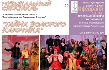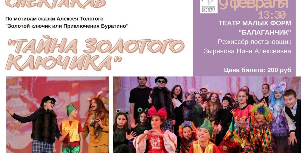 Театр малых форм “Балаганчик” (рук. Зырянова Н.А.) со спектаклем по мотивам повести сказки А. Н. Толстого “Золотой ключик, или Приключения Буратино”