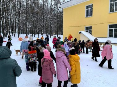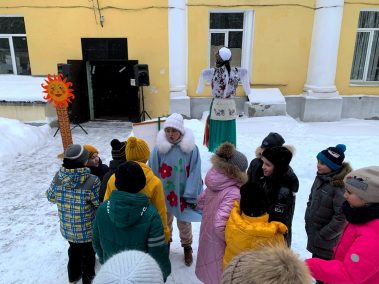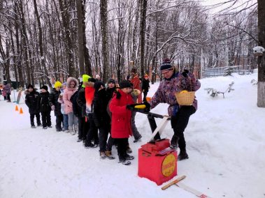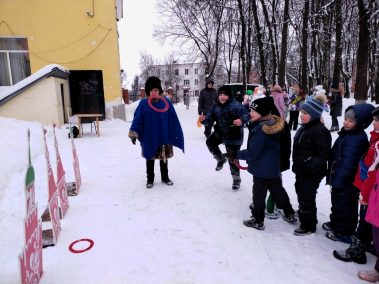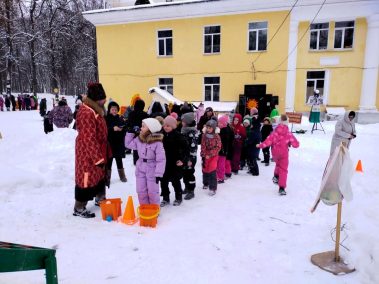 Сегодня для школьников прошла игра по станциям. Ребята метали блины, стреляли из лука, отгадывали загадки, соревновались на метлах и прыгали через канат.