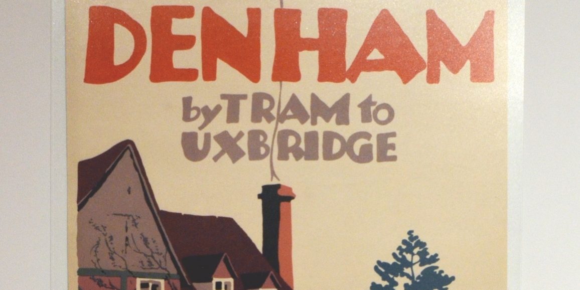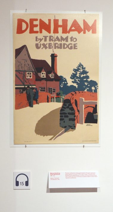 Цветная литография Ньюболда “Денем. Трамваем к Аксбриджу” спроектирована по заказу Лондонского совета по пассажирскому транспорту и рекламирует сообщение между пригородами Лондона”.