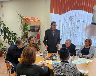 В читальном зале Библиотечно-информационного комплекса состоялось заседание клуба “Дружеские встречи”, посвящённое выходу сборника тульских поэтов “Отблески” и созданию одноименной литературной группы, в которую вошли Александр Бабенко, Николай Ральников, Виктор Фролов, Сергей Ефанов, Игорь Никольский, Надежда Первухина, Мила Анданте, Игорь Мельников.