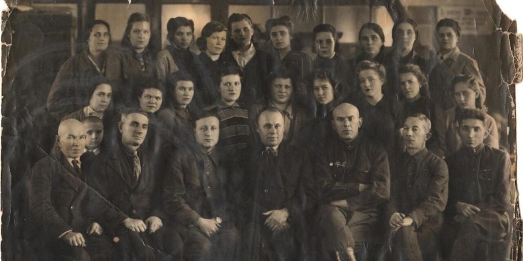 “Вон там мужчина сидит в гимнастерке и хромовых сапогах. Комсоставская шерстяная гимнастерка, два Ордена Отечественной войны и Красная Звезда. В первом ряду третий справа. Хромовые сапоги – это явно на войне был, явно офицер…