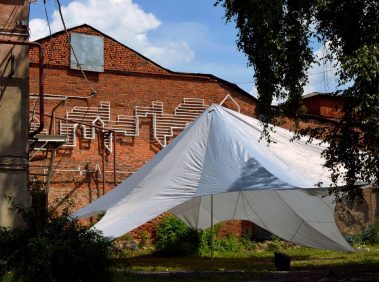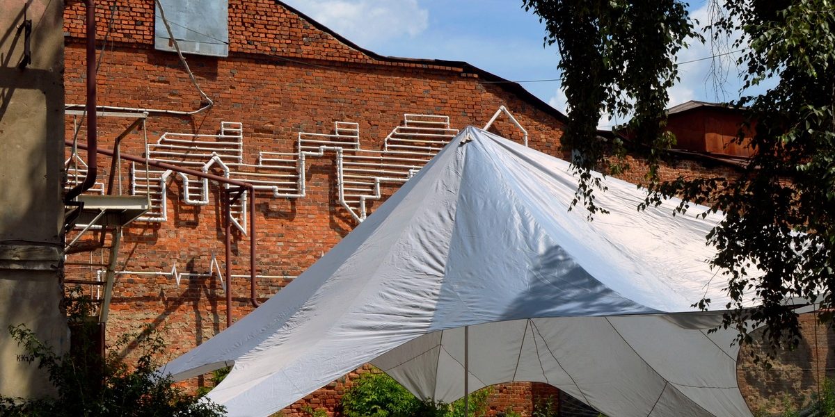 На фотографии Дениса Бычихина эпизод преображения нашего музейного двора перед стартом скульптурного симпозиума.