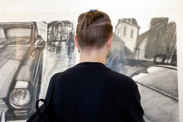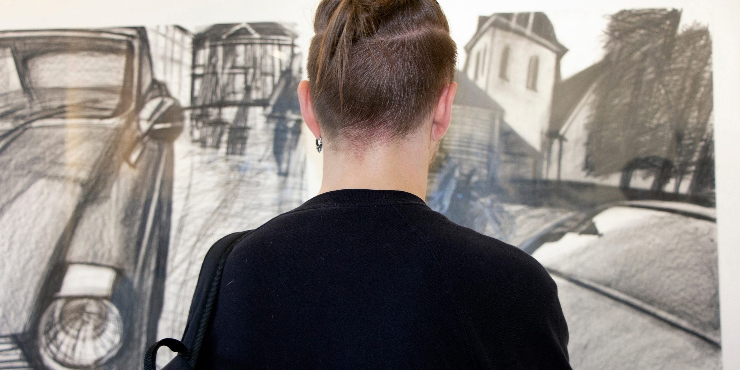 На фотографии Артёма Лоскота: эпизод вернисажа выставки “Мы ушли гулять. Андрей Ветрогонский. Графика”
