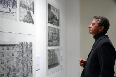 Фото Артёма Лоскота: эпизод вернисажа выставки “Внутри стен. Архитектура как контекст”.