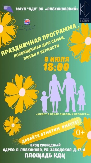 ПРАЗДНИЧНАЯ ПРОГРАММА, ПОСВЯЩЁННАЯ ДНЮ СЕМЬИ, ЛЮБВИ И ВЕРНОСТИ в Культурно-досуговом центре “Плехановский”