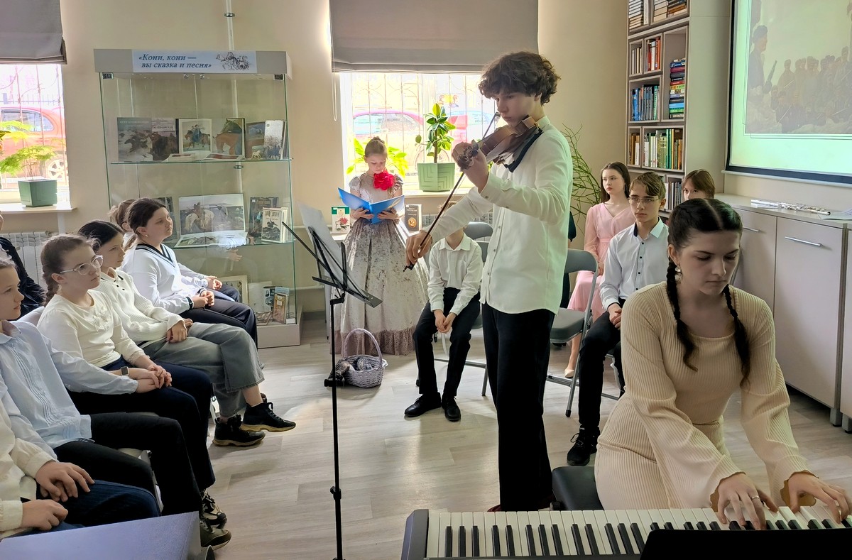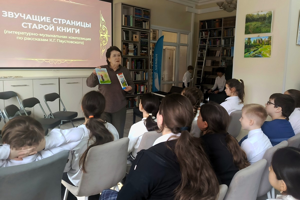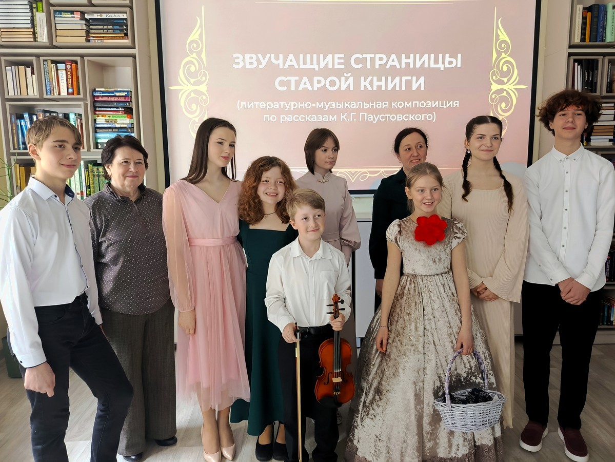Замечательную театрализованную литературно-музыкальную композицию «Звучащие страницы в старой книге» по рассказам и сказкам К. Паустовского представили юным читателям учащиеся Детской школы искусств им. Г. Галынина.